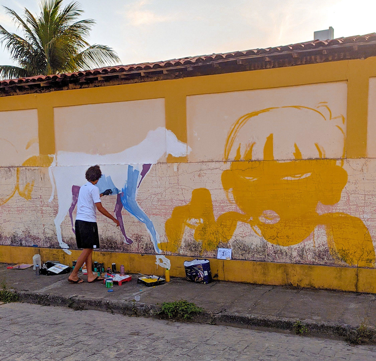 Pintura realizada em beira de praia na Atalaia Nova, Barra dos Coqueiros-SE.